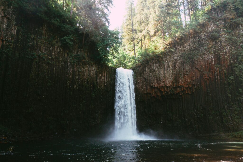 Abiqua Falls is a stunning Oregon waterfall elopement location known for its basalt cliffs, deep green forest, and dramatic waterfall backdrop. It is a great fit for couples who want a more adventurous setting with a secluded feel.