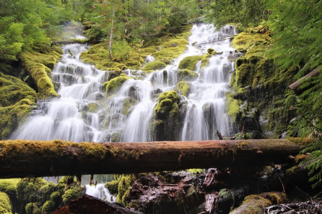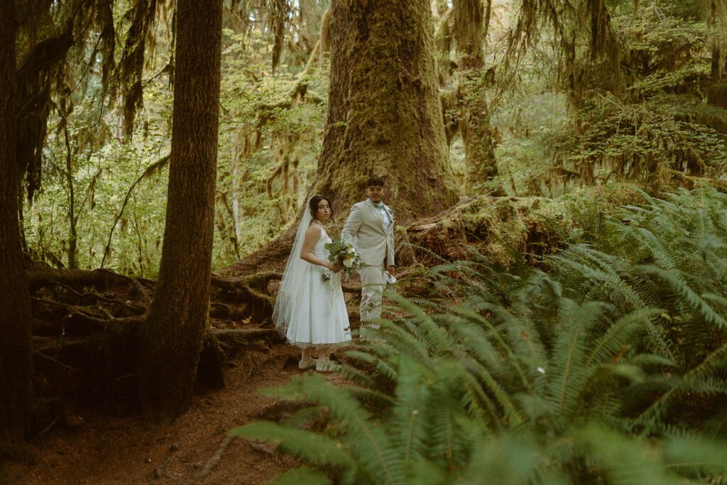 Forest elopement locations in Oregon offer lush greenery, moss covered trees, and beautiful waterfalls that create a quiet and magical setting for an intimate ceremony.
